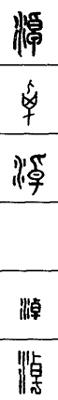 从上到下依次是小篆、甲骨文、金文、古玺及战国文字、缪篆及汉代文字、鸟虫篆。