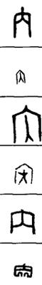 〈辨〉内字甲骨文从冂从入,表示入门的意思;冂读jiōng,象示门。金文作从入从宀,表示进入室内;宀读mián,象房屋。篆书讹变,楷书作内。