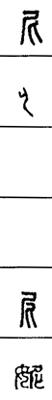 从上到下依次是小篆、甲骨文、金文、古玺及战国文字、缪篆及汉代文字、鸟虫篆。