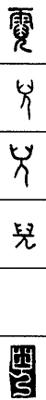 从上到下依次是小篆、甲骨文、金文、古玺及战国文字、缪篆及汉代文字、鸟虫篆。