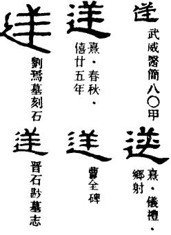 〈辨〉逆字声符屰读nì,甲、金文字形都象倒写的大字,大为正面人体,用来表示顺逆的逆。又加形符辵,表示迎接,迎接时双方走的方向相反。