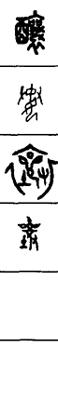 从上到下依次是小篆、甲骨文、金文、古玺及战国文字、缪篆及汉代文字、鸟虫篆。