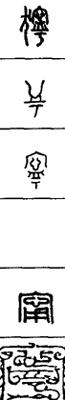 从上到下依次是小篆、甲骨文、金文、古玺及战国文字、缪篆及汉代文字、鸟虫篆。