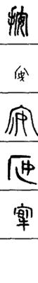 从上到下依次是小篆、甲骨文、金文、古玺及战国文字、缪篆及汉代文字、鸟虫篆。