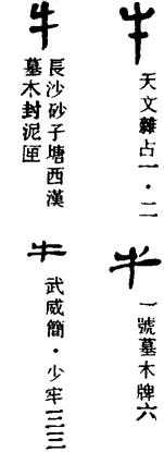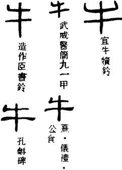 【说明】“牛”为象形字。像牛头角之形。参附录三。