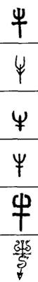 从上到下依次是小篆、甲骨文、金文、古玺及战国文字、缪篆及汉代文字、鸟虫篆。