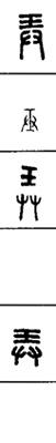 从上到下依次是小篆、甲骨文、金文、古玺及战国文字、缪篆及汉代文字、鸟虫篆。