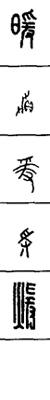 从上到下依次是小篆、甲骨文、金文、古玺及战国文字、缪篆及汉代文字、鸟虫篆。