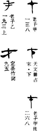 〈辨〉才字金文象种子刚刚生芽冒出地上的样子。楷书写作才,用为偏旁或写作十,见