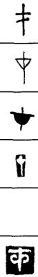 从上到下依次是小篆、甲骨文、金文、古玺及战国文字、缪篆及汉代文字、鸟虫篆。