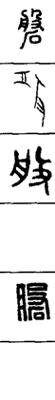从上到下依次是小篆、甲骨文、金文、古玺及战国文字、缪篆及汉代文字、鸟虫篆。