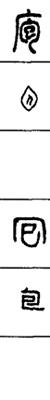 从上到下依次是小篆、甲骨文、金文、古玺及战国文字、缪篆及汉代文字、鸟虫篆。