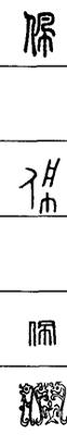 从上到下依次是小篆、甲骨文、金文、古玺及战国文字、缪篆及汉代文字、鸟虫篆。