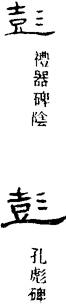 〈辨〉彭字从壴从彡,本义为鼓声。壴读zhù,古文字象鼓之形,详见喜字下。彡本为指示符号,象示鼓声;后混同于象示花纹的彡,读shān,用为声符。