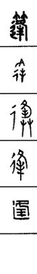 从上到下依次是小篆、甲骨文、金文、古玺及战国文字、缪篆及汉代文字、鸟虫篆。
