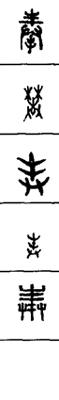 从上到下依次是小篆、甲骨文、金文、古玺及战国文字、缪篆及汉代文字、鸟虫篆。