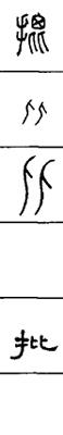 从上到下依次是小篆、甲骨文、金文、古玺及战国文字、缪篆及汉代文字、鸟虫篆。