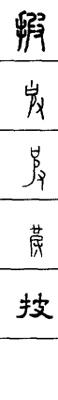 从上到下依次是小篆、甲骨文、金文、古玺及战国文字、缪篆及汉代文字、鸟虫篆。