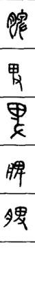 从上到下依次是小篆、甲骨文、金文、古玺及战国文字、缪篆及汉代文字、鸟虫篆。