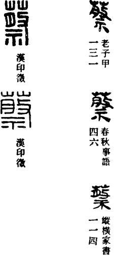 ㈠ cài ①野草。《说文》:“蔡,草也。”左思《魏都赋》:“蔡莽螫刺,昆虫毒噬。”(螫刺:扎,刺。噬shì:咬。)②占卜用的大龟。《论语·公冶长》:“臧文仲居蔡。”(居:使动用法,盖屋子使居住。)《左传·襄公二十三年》:“且致大蔡焉。”(致:送给。)泛指龟。元稹《芳树》:“清池养神蔡,已复长虾蟆。”(虾蟆:蛤蟆。)③周代国名,在今河南省上蔡、新蔡等县。《春秋·隐公四年》:“蔡人、卫人伐郑。”《吕氏春秋·慎人》:“孔子穷于陈、蔡之间。”(穷:困窘。)