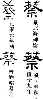 馬王堆帛書《春秋事語·衛獻公出亡章》:“獻公使公子段謂寧召子曰:‘后(苟)入我□正(政)必〔寧〕氏之門出,蔡則我也。’”此章事見《左傳》襄公二十六年及二十七年,此句《左傳》作:“以公命與甯喜言曰:‘苟反,政由甯氏,祭則寡人。’”睡虎地秦簡《日書》甲《除》:“以蔡,上下群神鄉(饗)之,乃盈志。”按《墨子·所染》:“幽王染於傅公夷、蔡公穀。”《吕氏春秋·當染》“蔡公”作“祭公”。
