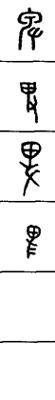 从上到下依次是小篆、甲骨文、金文、古玺及战国文字、缪篆及汉代文字、鸟虫篆。