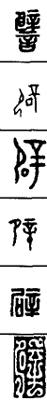 从上到下依次是小篆、甲骨文、金文、古玺及战国文字、缪篆及汉代文字、鸟虫篆。
