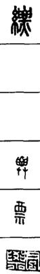 从上到下依次是小篆、甲骨文、金文、古玺及战国文字、缪篆及汉代文字、鸟虫篆。
