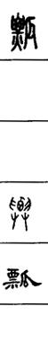 从上到下依次是小篆、甲骨文、金文、古玺及战国文字、缪篆及汉代文字、鸟虫篆。