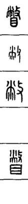 从上到下依次是小篆、甲骨文、金文、古玺及战国文字、缪篆及汉代文字、鸟虫篆。