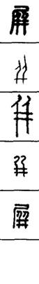 从上到下依次是小篆、甲骨文、金文、古玺及战国文字、缪篆及汉代文字、鸟虫篆。