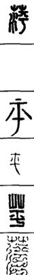 从上到下依次是小篆、甲骨文、金文、古玺及战国文字、缪篆及汉代文字、鸟虫篆。