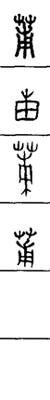 从上到下依次是小篆、甲骨文、金文、古玺及战国文字、缪篆及汉代文字、鸟虫篆。
