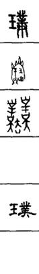 从上到下依次是小篆、甲骨文、金文、古玺及战国文字、缪篆及汉代文字、鸟虫篆。