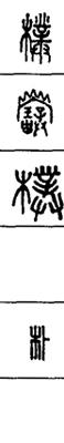 从上到下依次是小篆、甲骨文、金文、古玺及战国文字、缪篆及汉代文字、鸟虫篆。