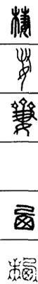 从上到下依次是小篆、甲骨文、金文、古玺及战国文字、缪篆及汉代文字、鸟虫篆。
