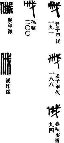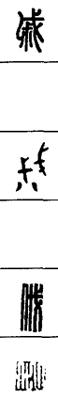 从上到下依次是小篆、甲骨文、金文、古玺及战国文字、缪篆及汉代文字、鸟虫篆。