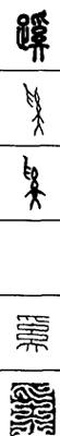 从上到下依次是小篆、甲骨文、金文、古玺及战国文字、缪篆及汉代文字、鸟虫篆。