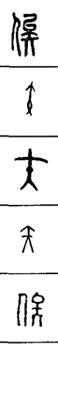 从上到下依次是小篆、甲骨文、金文、古玺及战国文字、缪篆及汉代文字、鸟虫篆。