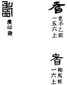 从上到下依次是小篆、甲骨文、金文、古玺及战国文字、缪篆及汉代文字、鸟虫篆。
