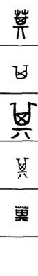 从上到下依次是小篆、甲骨文、金文、古玺及战国文字、缪篆及汉代文字、鸟虫篆。