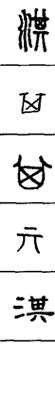 从上到下依次是小篆、甲骨文、金文、古玺及战国文字、缪篆及汉代文字、鸟虫篆。