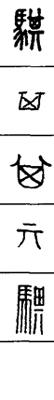 从上到下依次是小篆、甲骨文、金文、古玺及战国文字、缪篆及汉代文字、鸟虫篆。