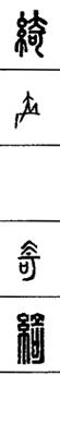 从上到下依次是小篆、甲骨文、金文、古玺及战国文字、缪篆及汉代文字、鸟虫篆。