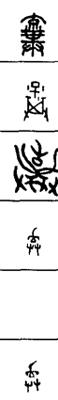 从上到下依次是小篆、甲骨文、金文、古玺及战国文字、缪篆及汉代文字、鸟虫篆。
