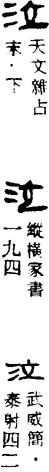 从上到下依次是小篆、甲骨文、金文、古玺及战国文字、缪篆及汉代文字、鸟虫篆。
