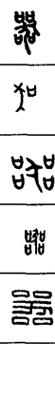 从上到下依次是小篆、甲骨文、金文、古玺及战国文字、缪篆及汉代文字、鸟虫篆。