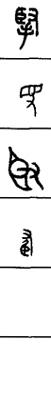 从上到下依次是小篆、甲骨文、金文、古玺及战国文字、缪篆及汉代文字、鸟虫篆。