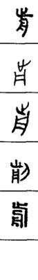 从上到下依次是小篆、甲骨文、金文、古玺及战国文字、缪篆及汉代文字、鸟虫篆。