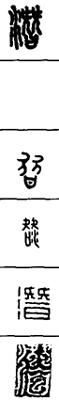 从上到下依次是小篆、甲骨文、金文、古玺及战国文字、缪篆及汉代文字、鸟虫篆。